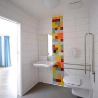 Современные ванные комнаты оборудованы для гостей на инвалидных креслах.