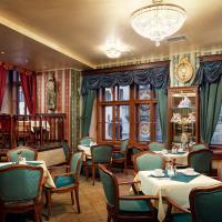 Завтрак «шведский стол» сервируется ежедневно в кафе Mozart, оформленном в стиле позднего барокко.