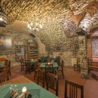 В ресторане, примечательном готическим сводом потолка, гостям сервируют изысканные блюда чешской и международной кухни.