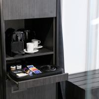 В числе удобств кофемашина Nespresso, мини-бар, сейф, гладильные принадлежности и регулируемая цветная светодиодная подсветка.