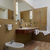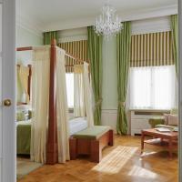 К услугам гостей элегантно обставленные номера с высоким потолком и отделанной мрамором ванной комнатой.