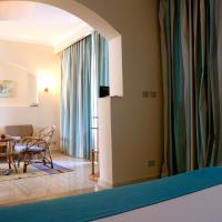 В просторных люксах курортного отеля Sheikh Ali к вашим услугам деревянная мебель и белье из египетского хлопка.