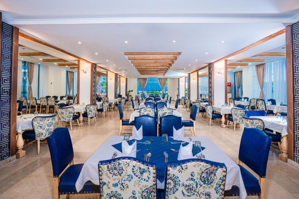 На территории работают бар, ресторан, аквапарк и открытый бассейн.