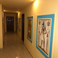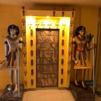 Все номера отеля Great Pyramid Inn с ковровым покрытием и деревянной мебелью оформлены в древнеегипетском стиле.
