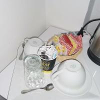 - Все тарелки, стаканы, столовые приборы и другая кухонная посуда продезинфицированы