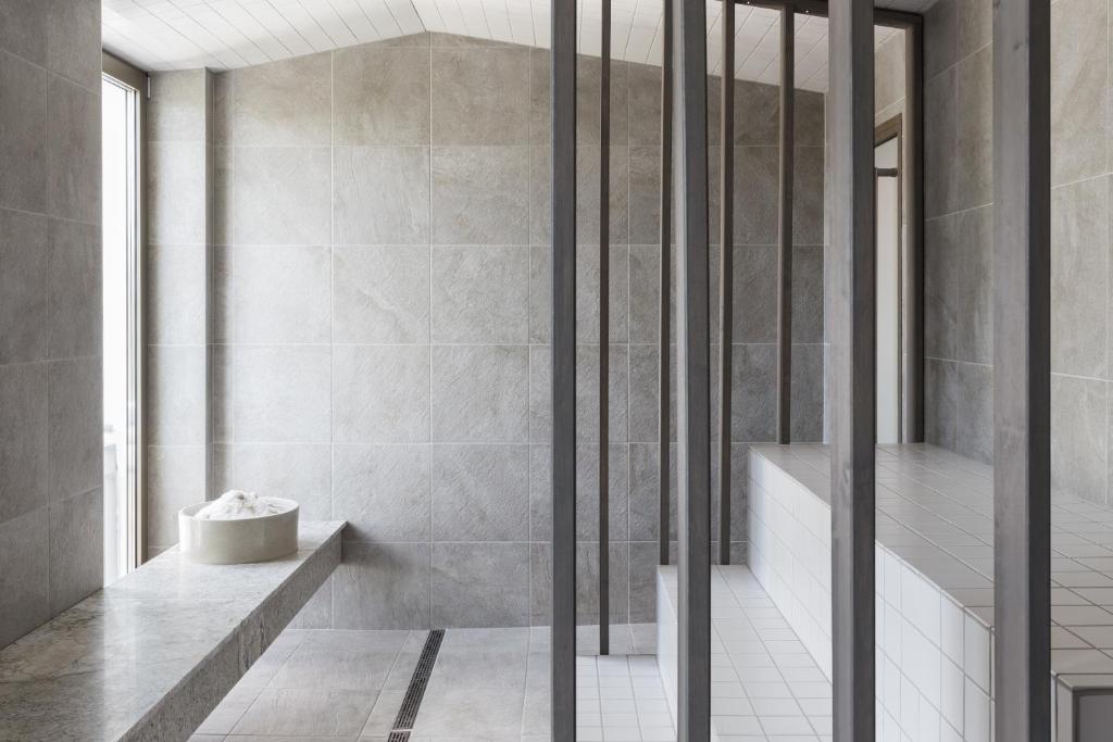 Ванная комната с душем укомплектована феном и купальными халатами.