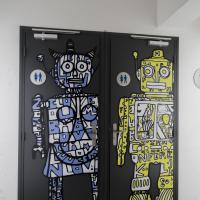 Общие номера с общей ванной комнатой с душем оформлены в ярких тонах.