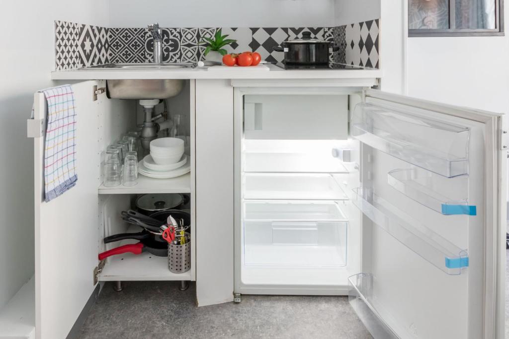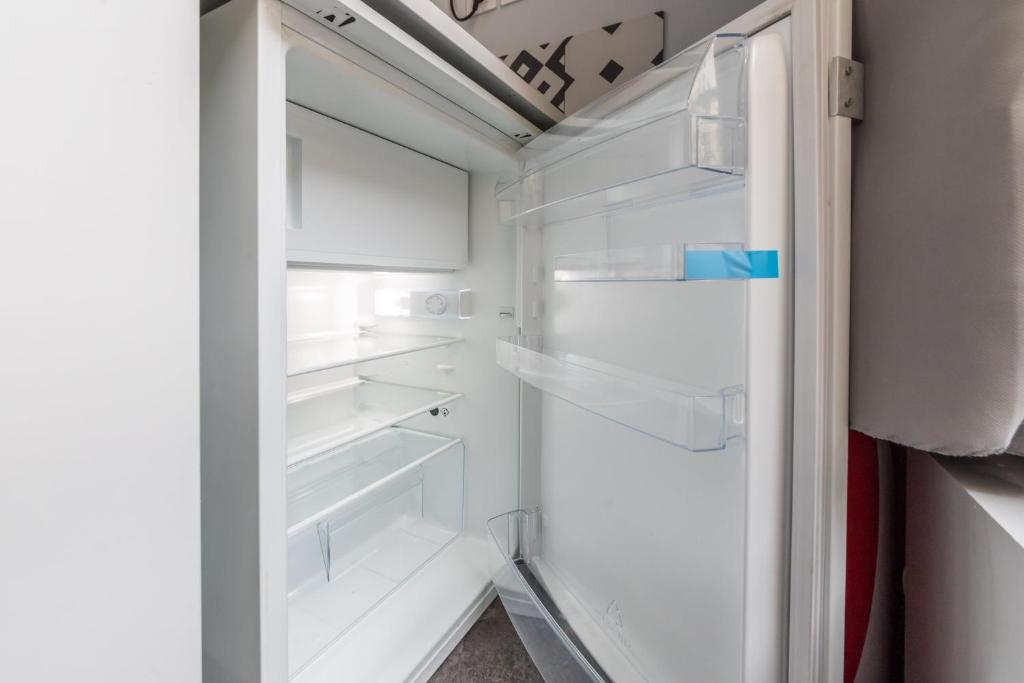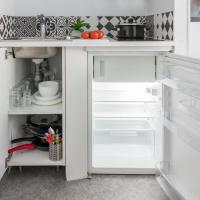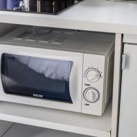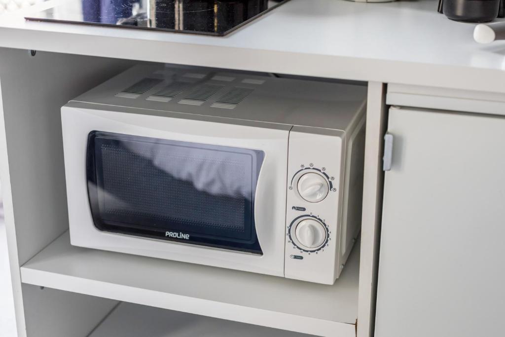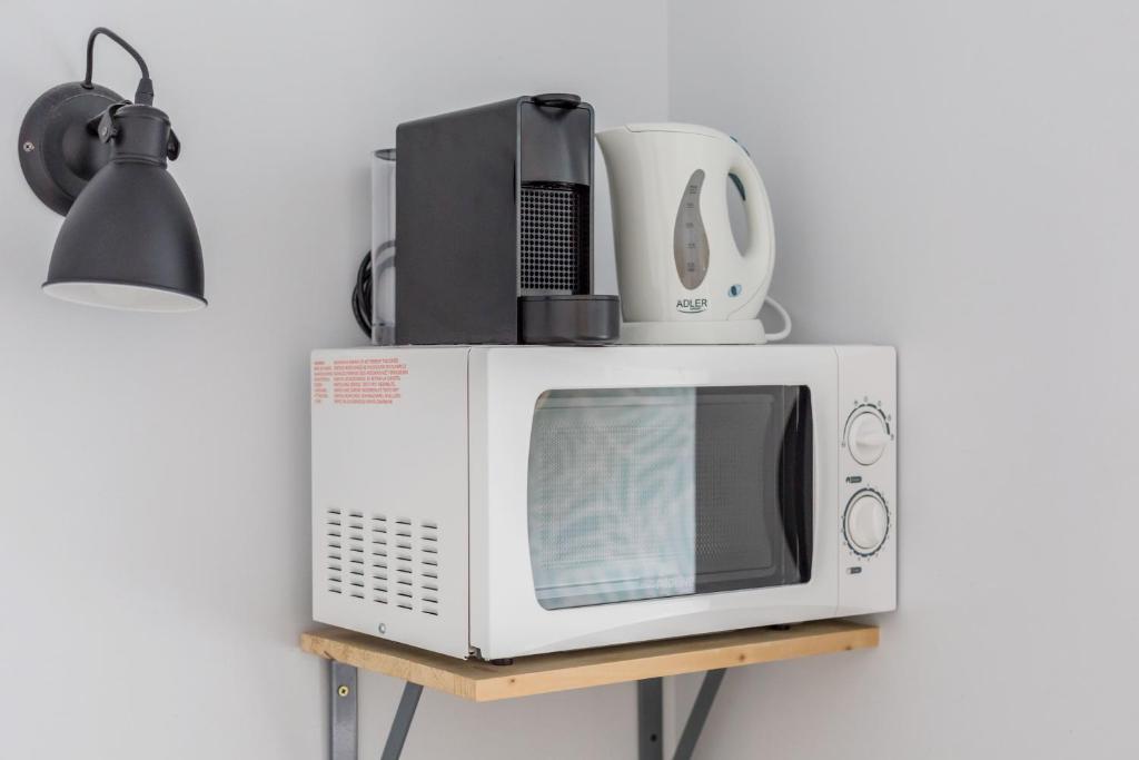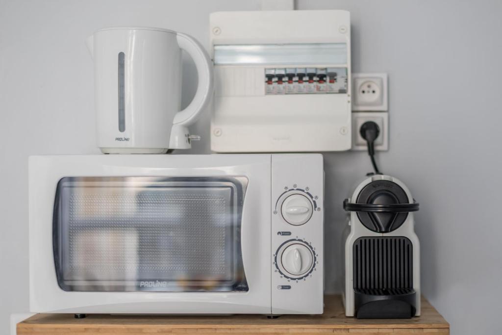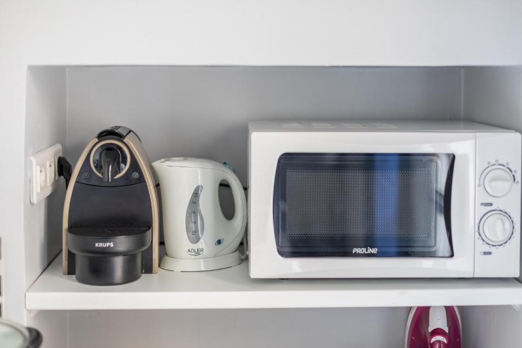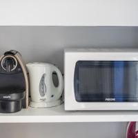 В числе удобств микроволновая печь, холодильник, тостер, чайник и кофемашина.