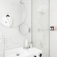 В собственной ванной комнате с душем предоставляются бесплатные туалетно-косметические принадлежности и фен, а также халаты и тапочки.