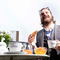По утрам в сводчатом погребе с каменными стенами сервируют неограниченный завтрак «шведский стол» со свежевыжатым соком, кофе Nespresso, чаем Mariage Frères и горячим шоколадом Monbana.