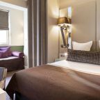 Звукоизолированные номера с кондиционером лаконично оформлены в классическом стиле.