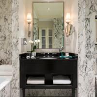 В собственной ванной комнате с ванной или душем, отделанной итальянским мрамором, имеются туалетно-косметические принадлежности марки Hermes.