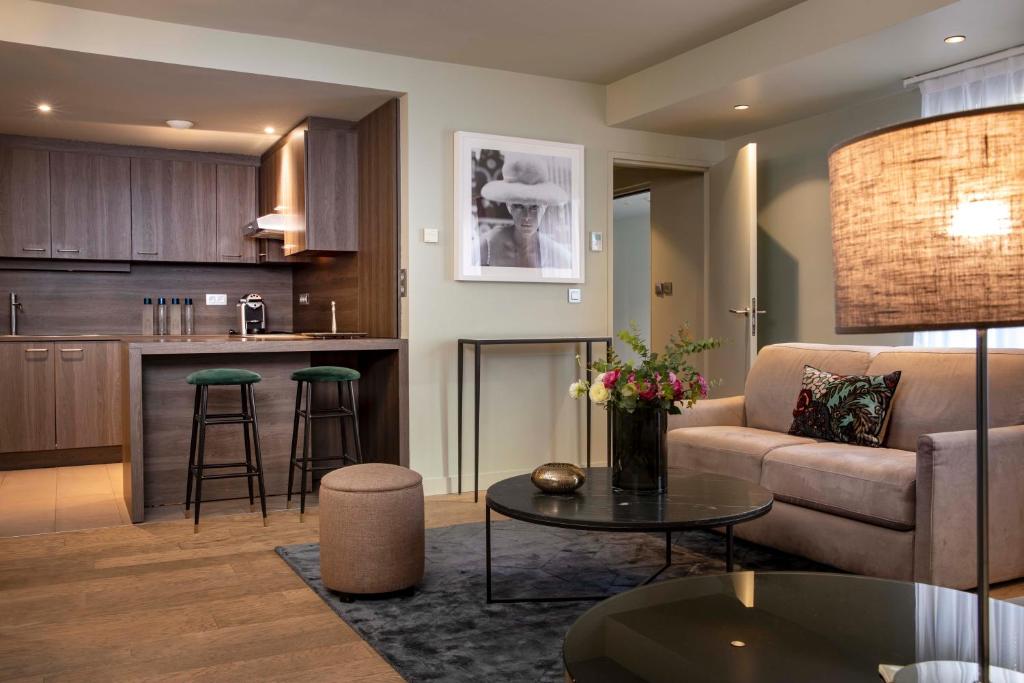 В числе удобств во всех люксах и апартаментах прохладный пол, система кондиционирования воздуха и отопления, телевизор с плоским экраном, гостиный уголок и собственная ванная комната с ванной и феном.