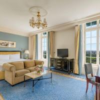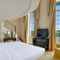Отель-дворец Shangri-La Paris занимает бывшую резиденцию принца Роланда Бонапарта, охраняемую как памятник архитектуры, и располагается напротив Эйфелевой башни, на берегу Сены, всего в 500 метрах от площади Трокадеро.