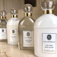 Как фирменные люксы, так и прочие номера и люксы оформлены в кремовых, белоснежных и синих тонах, сочетая традиции европейских имперских традиций с азиатской эстетикой.