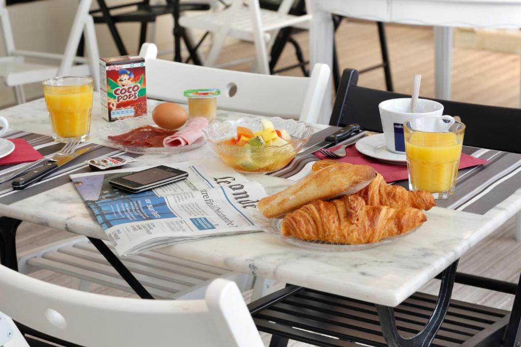 По утрам в отеле сервируется завтрак с французской выпечкой и йогуртами.
