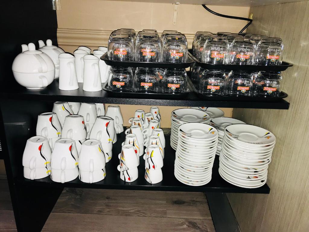 - Все тарелки, стаканы, столовые приборы и другая кухонная посуда продезинфицированы