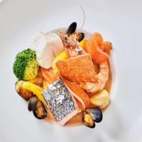 В стильном обеденном зале ресторана L'Etrave подают изысканные блюда из морепродуктов.