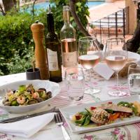 В ресторане отеля Ferme d'Augustin подают блюда региональной кухни из сезонных овощей, которые выращивают в садах отеля.