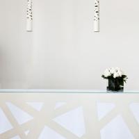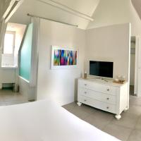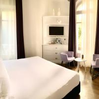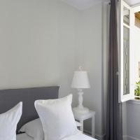 Элегантный отель белого цвета располагает террасой и баром, который специализируется на шампанских винах.
