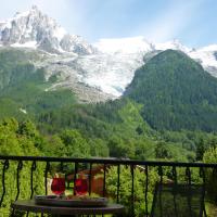 Из сада и с террасы открывается вид на ледник Боссон и горный хребет Монблан.