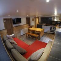 Хостел Chamonix Lodge с деревянными панелями на стенах и открытыми балками расположен в городе Шамони-Монблан.