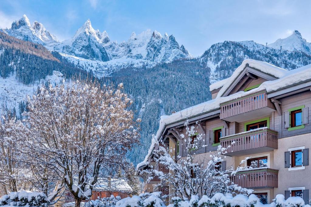 Апарт-отель La Ginabelle с башней, устремленной к знаменитому пику Монблан, находится в центре города Шамони.