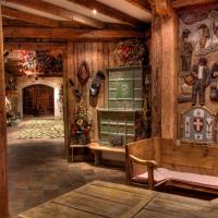 Просторные люксы отеля оформлены в альпийском стиле и обставлены деревянной мебелью.
