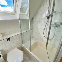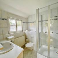 В светлых номерах гостевого дома Am Weinberg есть телевизор и собственная ванная комната.