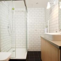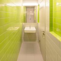 Номера хостела Generator Berlin Mitte с собственной ванной комнатой оформлены в ярких тонах.