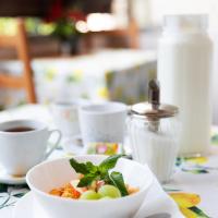 Согласно новой концепции, в завтрак включен широкий спектр йогуртов, фруктовых салатов и других полезных блюд.