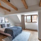 Гостям предлагаются просторные апартаменты с деревянным полом и высоким потолком.