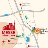 За 12 минут на метро можно добраться до Дюссельдорфа, а за 10 минут — дойти до восточного входа в выставочный центр.
