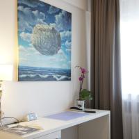 Светлые и современные номера отеля Business Wieland украшены работами современного нью-йоркского художника Питера Крюгера.
