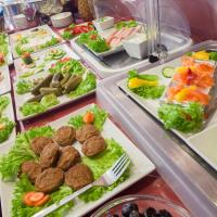 Недорогой завтрак "шведский стол" с блюдами интернациональной кухни подается в отеле Mondial каждое утро.