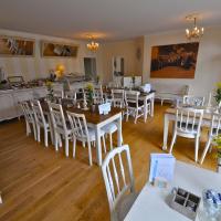 Каждое утро в светлом обеденном зале подают обильный завтрак "шведский стол".