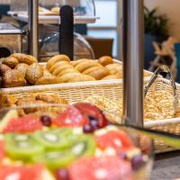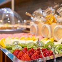 Каждое утро в светлом зале для завтрака накрывают бесплатный континентальный завтрак «шведский стол».