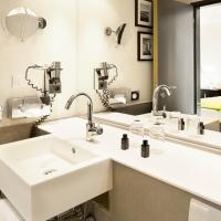 В элегантных ванных комнатах с косметическим зеркалом предоставляются фен и туалетно-косметические принадлежности.