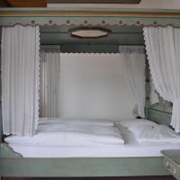 По-домашнему уютные номера отеля Tagungshotel Höchster Hof украшены коврами и шторами.