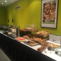Каждое утро с 6:30 в стильном зале для завтрака с оригинальным оформлением и белой мебелью сервируют полный завтрак «шведский стол».
