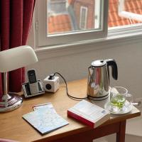 В числе удобств оформленных в классическом стиле номеров отеля Hanseatin рабочий стол и тапочки.