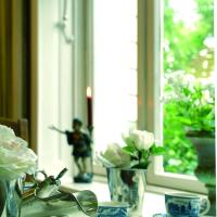 Гости могут попробовать различные сорта кофе и домашние пирожные, любуясь прекрасным садом.
