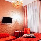 В некоторых номерах есть кровать с балдахином и зеркальный потолок.