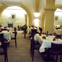 В меню представлены блюда немецкой кухни; из окон открывается вид на внутренний двор и на клуатр.