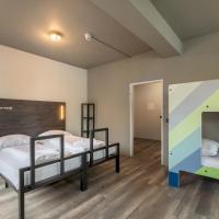 Просторные номера отеля A&O Köln Hauptbahnhof оформлены в ярких тонах.