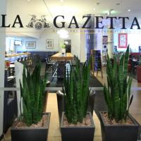 В ресторане La Gazetta при отеле Lindner Dom подают блюда средиземноморской кухни и импортные вина.