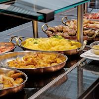 В элегантном ресторане Maurisches Saal с люстрами и высокими потолками для гостей сервируется разнообразный завтрак «шведский стол» и подаются превосходные блюда при свечах.