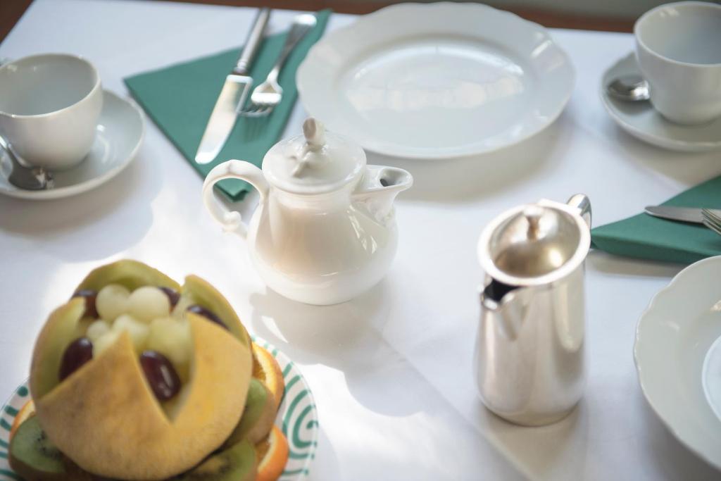 Каждое утро в уютном зале для завтраков для гостей накрывают аппетитный «шведский стол» из разнообразных свежих фруктов, мясного ассорти и напитков.