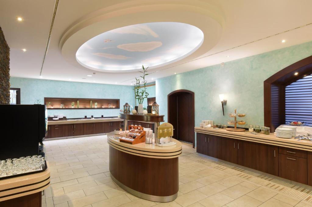 Ресторан отеля Vitalis оформлен в баварском стиле, а в его меню представлены разнообразные блюда.