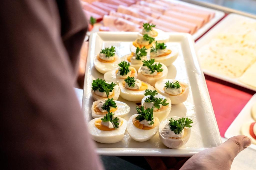 В зале для завтрака отеля сервируют завтрак «шведский стол».